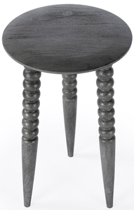 A tripod of magnificently carved and tapered legs and well-rounded top imbue this accent table with a lot of style. Crafted from mango solid wood, and adorned in a sleek gray finish.Read More