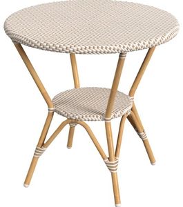 4 table legs are adjoined by a matching lower rattan shelf