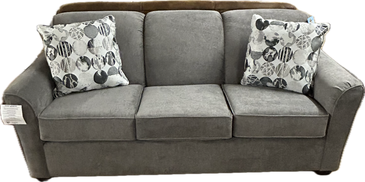 Our Smyrna collection features a contemporary sofa, loveseat, chair, and ottoman, as well as queen, full, and twin sleepers. The sofa boasts a three over three configuration with a channel stitched back over bordered seat cushions and a clean front rail. The modified half-moon arms are slightly flared. The sleeper is available with a standard, Visco, or air mattress.Read More
