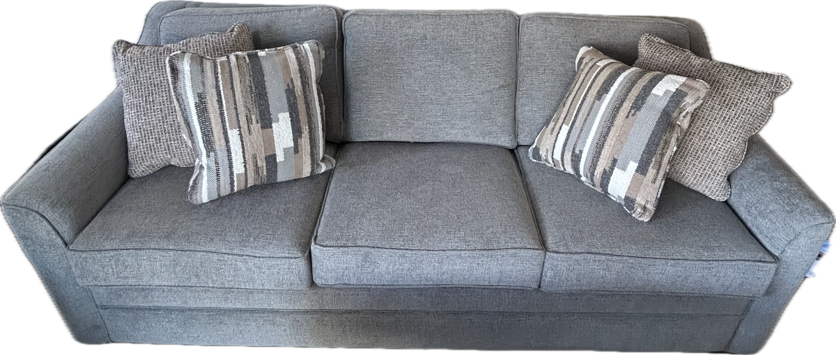 Our Smyrna collection features a contemporary sofa, loveseat, chair, and ottoman, as well as queen, full, and twin sleepers. The sofa boasts a three over three configuration with a channel stitched back over bordered seat cushions and a clean front rail. The modified half-moon arms are slightly flared. The sleeper is available with a standard, Visco, or air mattress.Read More